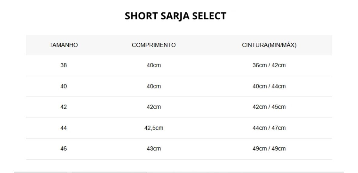 Confeccionado em tecido sarja, o Short SELECT une conforto e estilo. Possui cós com leve elástico, bolsos frontais tipo faca, bolsos traseiros embutidos e fecho embutido, garantindo um visual moderno e versátil.